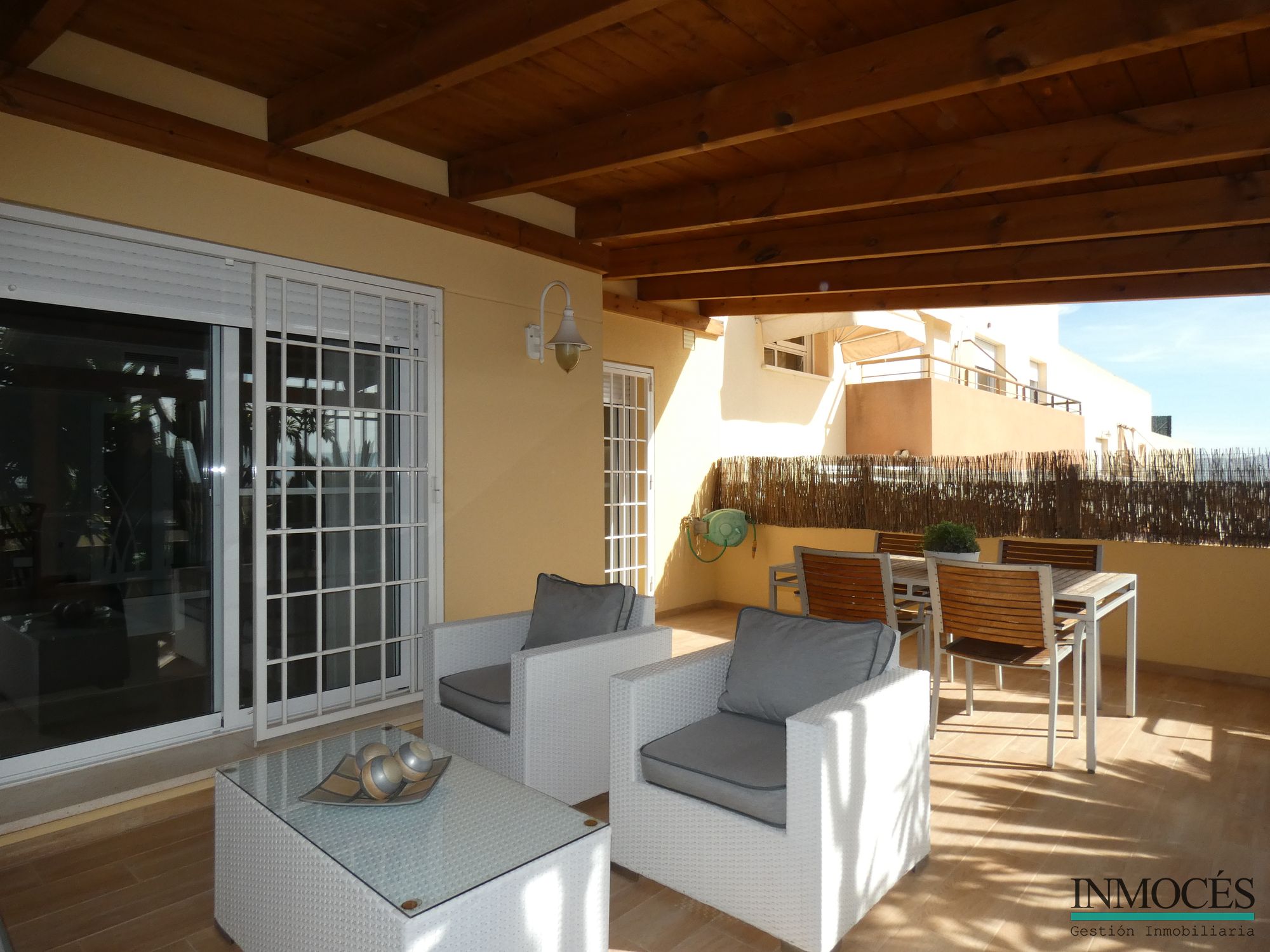 ESTUPENDA VIVIENDA DE DISEÑO LISTA PARA ENTRAR A VIVIR MUY AMPLIA Y CON MUCHA LUZ NATURAL GRACIAS A SU ORIENTACIÓN, SITUADA SITUADA A 5 MINUTOS DE MURCIA Y MUY BIEN COMUNICADA GRACIAS AL TRANVIA. SE DISTRIBUYE EN UN AMPLIO PORCHE DE ENTRADA, GRAN SALÓN-COMEDOR DE 25 M² Y SALIDA A UN PATIO DE 35 M² CON VISTAS A LA MONTAÑA Y A LAS ZONAS COMUNITARIAS, COCINA, 3 HABITACIONES, MÁS 1 BUHARDILLA CON SALIDA A UNA GRAN TERRAZA CON VISTAS INCREIBLES, 2 BAÑOS COMPLETOS (UNO DE ELLOS EN SUITE) Y 1 ASEO. ADEMÁS CUENTA CON CALEFACCIÓN Y AIRE ACONDICIONADO POR CONDUCTOS, VENTANAS CON CRISTAL CLIMALIT, REJAS, CARPINTERÍA INTERIOR DE ROBLE LACADA EN BLANCO, SUELOS DE MARMOL, ARMARIOS EMPOTRADOS. LA URBANIZACIÓN CUENTA CON UNA ZONA COMÚN DONDE PODRÁS DISFRUTAR DE UNA MAGNIFICA PISCINA Y ZONA INFANTIL. RECUERDE QUE CON INMOCÉS SOLO PAGARAS EL 1,5% AL COMPRAR O VENDER SU VIVIENDA.
