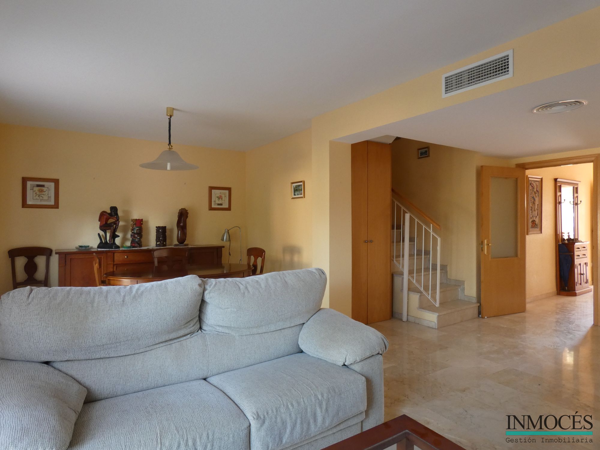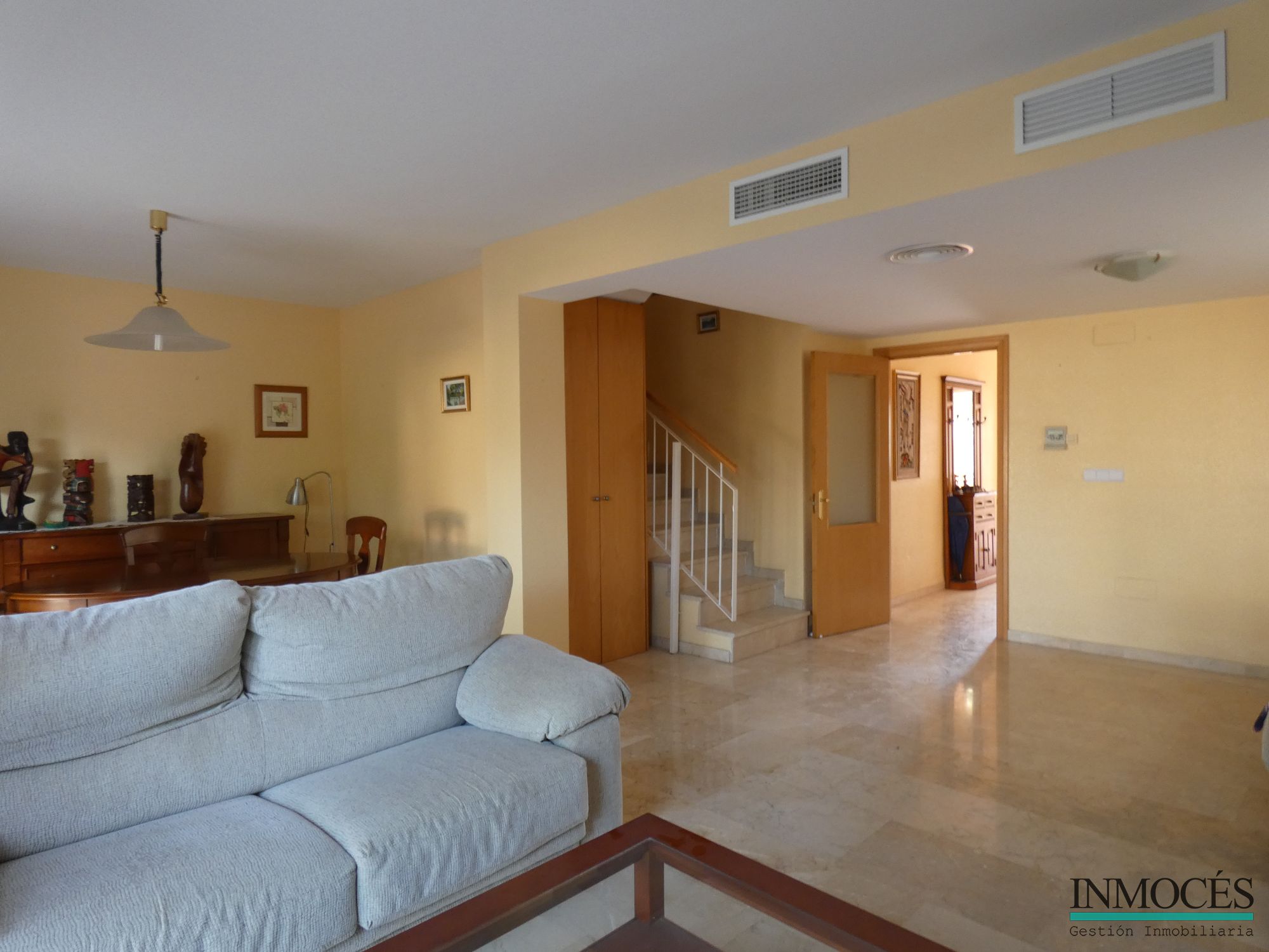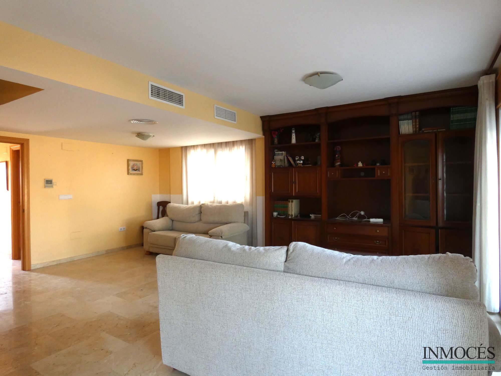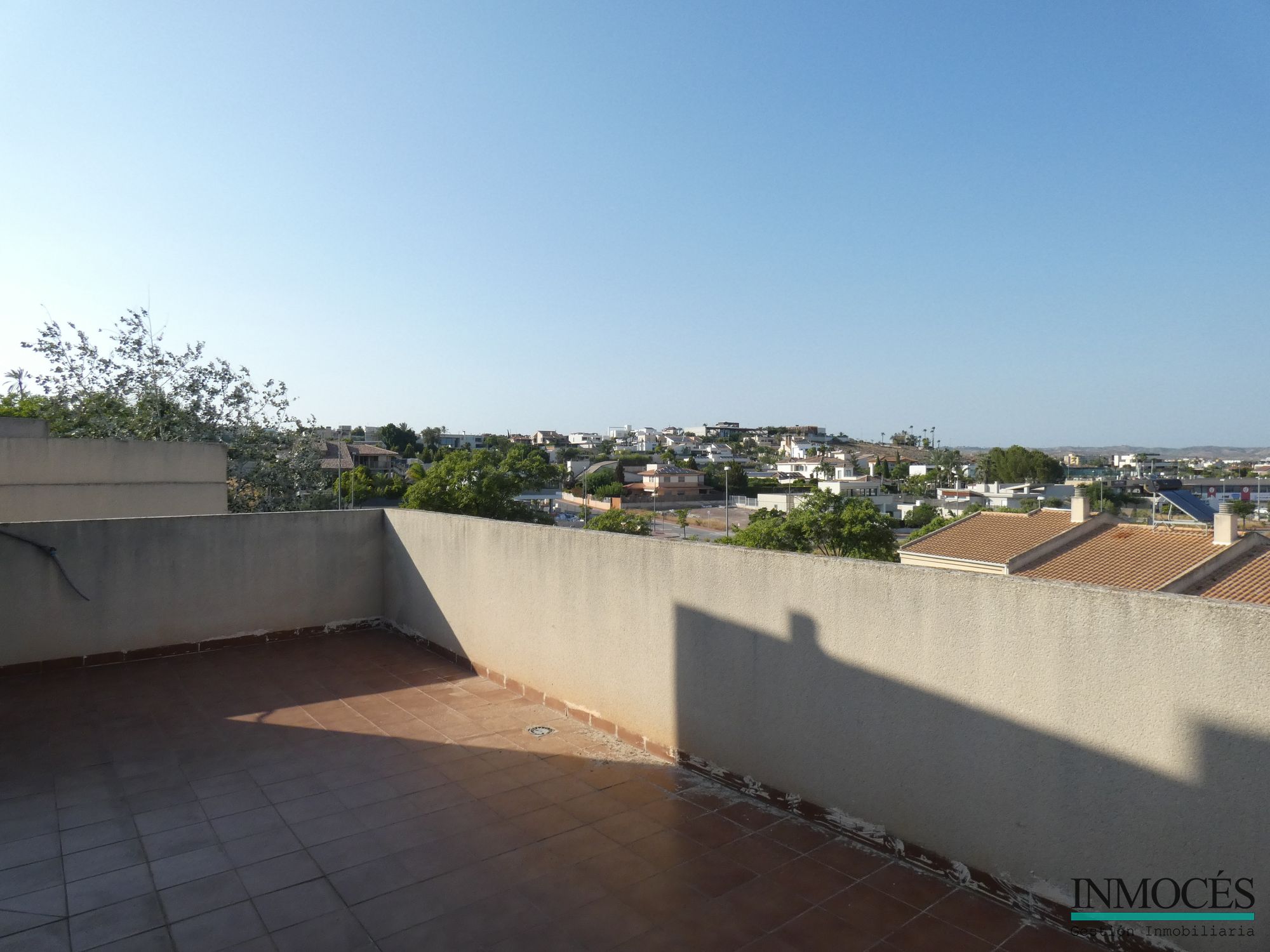 ESTUPENDA VIVIENDA MUY AMPLIA Y CON MUCHA LUZ NATURAL GRACIAS A SU ORIENTACIÓN, SITUADA , SITUADA A 5 MINUTOS DE MURCIA Y MUY BIEN COMUNICADA GRACIAS AL TRANVIA. SE DISTRIBUYE EN UNA AMPLIO PORCHE DE ENTRADA CON ACCESO A GARAJE PRIVADO, GRAN SALÓN-COMEDOR DE 35 M² Y SALIDA A UN PATIO DE 30 M² COMUNICANDOSE CON LA ZONA COMUNITARIA DE LA PISCINA Y JARDÍN, COCINA, 4 HABITACIONES, MÁS 1 BUHARDILLA CON SALIDA A UNA GRAN TERRAZA CON VISTAS A TODA MURCIA, 2 BAÑOS COMPLETOS (UNO DE ELLOS EN SUITE) Y 1 ASEO. ADEMÁS CUENTA CON CALEFACCIÓN , Y AIRE ACONDICIONADO POR CONDUCTOS, VENTANAS CON CRISTAL CLIMALIT, REJAS, CARPINTERÍA INTERIOR DE ROBLE, SUELOS DE MARMOL , ARMARIOS EMPOTRADOS. LA URBANIZACIÓN CUENTA CON UNA ZONA COMÚN DONDE PODRÁS DISFRUTAR DE UNA MAGNIFICA PISCINA Y ZONA INFANTIL. RECUERDE QUE CON INMOCÉS SOLO PAGARAS EL 1,5% AL COMPRAR O VENDER SU VIVIENDA.